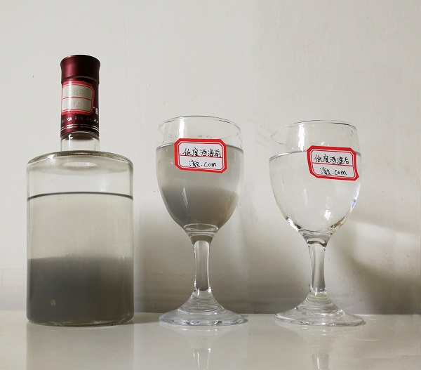 降固性物超標(biāo)、新酒催熟陳化一年、低度酒抗凍零下15度低溫不渾濁、經(jīng)該機過濾后白酒澄清度100%,可直接灌裝裝瓶。