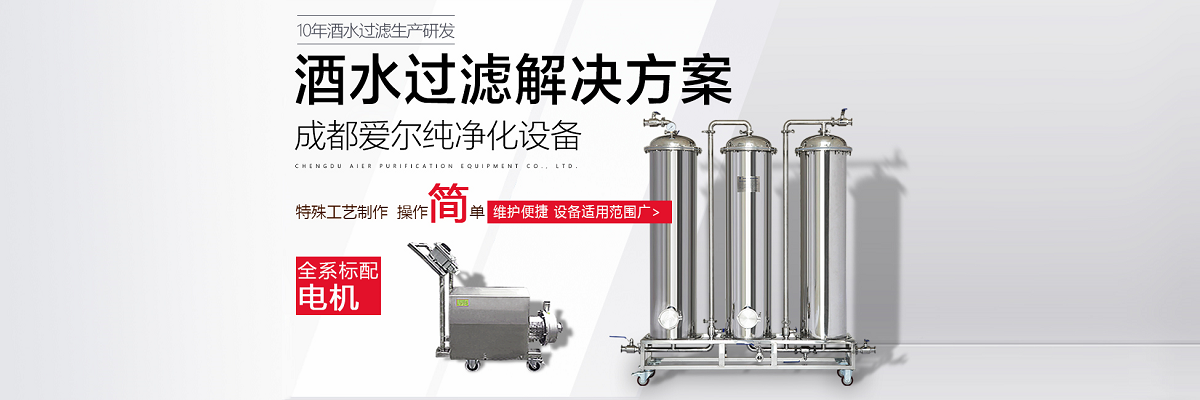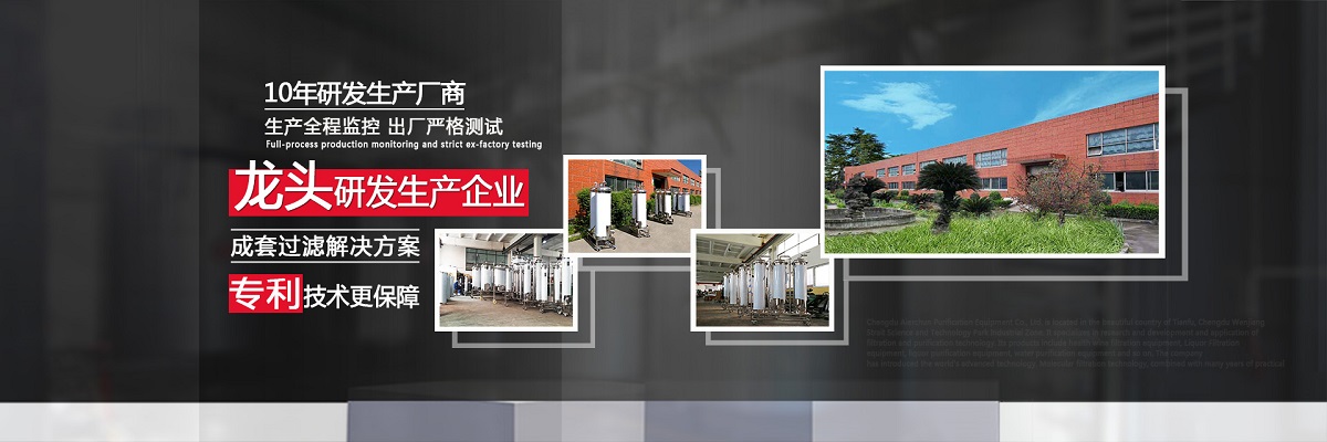 成都愛爾純凈化設(shè)備有限公司,坐落于美麗的天府之國,成都市溫江區(qū)海峽科技園工業(yè)區(qū),專業(yè)從事于過濾、凈化技術(shù)的研發(fā)應(yīng)用,產(chǎn)品有保健酒過濾設(shè)備、白酒過濾設(shè)備、白酒凈化設(shè)備、水凈化設(shè)備等,公司引進世界先進過濾分子技術(shù),結(jié)合專業(yè)技術(shù)人員資深多年實踐經(jīng)驗,解決酒類、飲水類后期處理難題。 業(yè)務(wù)涵蓋,酒類過濾:除混濁沉淀,澄清處理、除苦味,異雜味,新酒催熟陳化處理 、除塑化劑、固形物、雜醇油、甲醇及各類含量超標(biāo)后期處理。 水類:軟水、純凈水、礦泉水、飲料等凈化處理。用心為客戶提高生產(chǎn)效率、提高產(chǎn)品質(zhì)量、降低生產(chǎn)成本、環(huán)保減排而開發(fā)創(chuàng)新,堅持奮斗。 公司至誠每一位客戶,“誠信服務(wù),客戶至上”為宗旨,為客戶要求,用心凈化每一點滴,我們都將以精準(zhǔn)的數(shù)據(jù)化設(shè)計、嚴格的設(shè)備制作質(zhì)量把關(guān)、快捷專業(yè)的安裝調(diào)試以及周到的售后服務(wù),解決客戶生產(chǎn)過程中遇見的各種酒、水后期處理的技術(shù)難題。